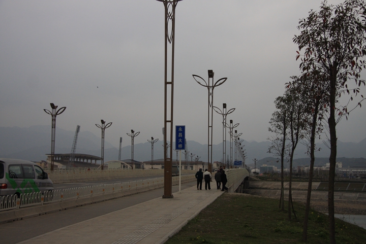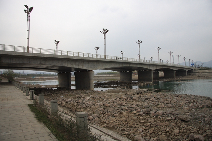 工程規(guī)模:永昌橋位于北川新縣城南端,連接齊魯大道和安北公路,是進(jìn)入新縣城的門(mén)戶(hù),也是新縣城對(duì)外交通的主要通道,代表著新縣城的形象和未來(lái)。永昌橋結(jié)構(gòu)型式采用變截面連續(xù)梁方案,橋梁全長(zhǎng)550米,其中橋梁主體長(zhǎng)230米,寬34米,斜15°。主梁跨徑組合為32.5+3x55+32.5米,箱梁分兩幅,斷面為單箱三室,跨中梁高1.9米,橋墩處梁高3.5米,懸臂2.5米。