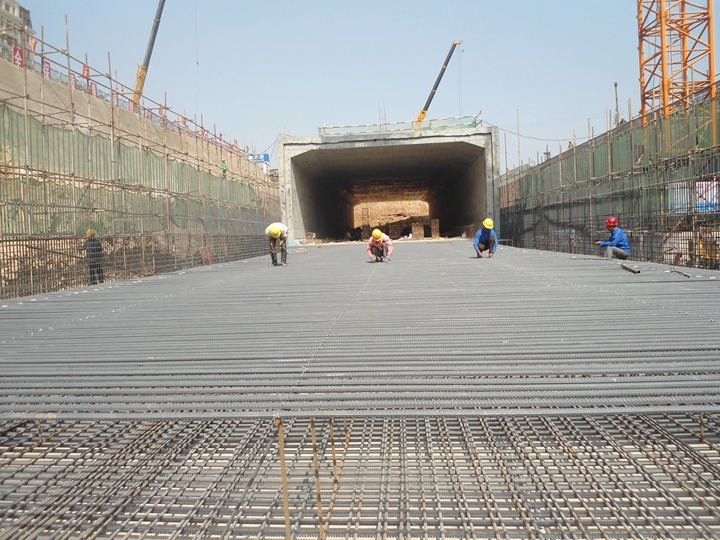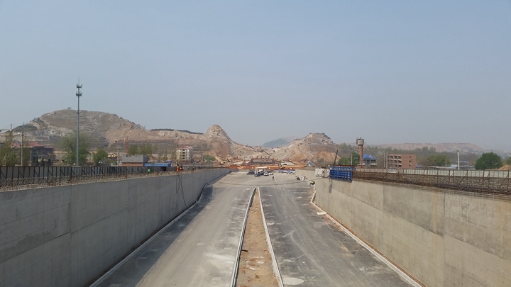 道路工程起于文莊路,地塹部分左線ZK0+725-ZK0+886.65,全長161.65m,右線YK0+725-YK0+887.65,全長162.65m。地上部分北側(cè)BK1+375-BK2+025,全長650m,南側(cè)NK0+425-NK1+075,全長650m。道路橫斷面為:4米人行道+3.5米非機動車道+3.0米綠化帶+14.75米機動車道+13.75機動車道+13.75機動車道+14.75米機動車道+3.0米綠化帶+3.5米非機動車道+4米人行道。