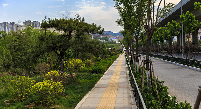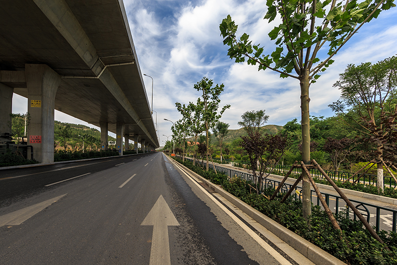 二環(huán)南路西起 G104,東至扳倒井立交,全長約 11.65 公里,全線經(jīng)過三個立交,分東西兩段。西段從 G104 到舜耕路以東 60 米,全長約 6.8 公里,包括地面道路、高架、地道、隧道和路塹等多種形式。東段從舜耕路東 60 米到扳倒井立交,主要為高架橋形式。